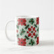 Isto é uma caneca. Uma forma pequena e fofa, uma caneca quente, vermelha verde com uma sensação de Natal harmoniosa.