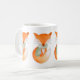 Diversão repetida raposa vermelha de inverno embrulhada em um cachecol e com a cauda pintura em aquarela em um fundo de neve branca. Ideal para o Natal ou amantes da raposa de inverno. Pintura em aquarela e design por Sarah Trett.