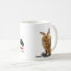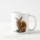 Uma caneca com o nome e o logotipo de BunnyLuv em um lado e no outro uma imagem de Carter, de um coelho afectuoso e do residente recente no abrigo.