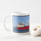 A caneca é de excelente qualidade, de bom peso e aparenta resistentência. O tamanho grande da caneca de 444 ml é muito prático, ela serve até para sobremesas. A alça é do tamanho certo para empunhadura, e oferece grande firmeza. A impressão ficou perfeita, a imagem ficou completamente nítida, e as cores vivas como na imagem do site.
