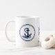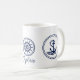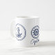 Bonita âncora e símbolo de roda da nave, caneca azul e branca no estilo marítimo - se preferir, você pode personalizar o modelo personalizado "Capitão" para seu nome, por exemplo.