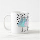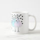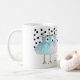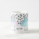 caneca de café com um monograma. Vestidos azuis, cor-de-rosa e turquesa em cabides. Fundo da Bolinhas Adicione seu nome ou monograma para personalizá-lo.