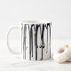Libere seu artista interior com cada gole de nossa Caneca de Cascata de Metal. Projetada para aqueles que apreciam a beleza da arte abstrata, esta impressionante caneca de cerâmica branca apresenta um padrão requintado de metal líquido pingando que envolve sua parte externa. Perfeita para uso em casa ou no escritório, esta caneca não apenas segura suas bebidas favoritas, mas também serve como uma peça de declaração que reflete seu estilo único.