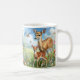 Café Caneca de cervo fêmea de pé em flores silvestres