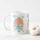 Uma caneca de Páscoa fofa para crianças com um coelho caprichoso , alguns corações e flores pequenas . Personalize-a com um nome .