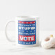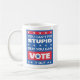 Esta caneca engraçada apresenta uma citação política popular sobre políticos estúpidos que as pessoas se divertem, independentemente de sua filiação política. "Você não pode consertar estúpido, mas pode votar para fora" é um design de caneca moderno e patriótico em uma combinação impressionante de vermelho, branco e azul acentuado com estrelas.