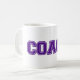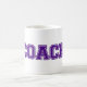 Treinador de Cores Escolares é um design de texto de arte gráfica. As letras colegiais são criadas com duas cores escolares. As letras são texturizadas, biseladas, aparadas e costura. A caneca simplesmente diz: COACH. Esta caneca está disponível em várias cores escolares. A design coordena-se com os produtos das minhas lojas de zazzle intituladas CORES ESCOLARES.