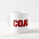 Treinador de Cores Escolares é um design de texto de arte gráfica. As letras colegiais são criadas com duas cores escolares. As letras são texturizadas, biseladas, aparadas e costura. A caneca simplesmente diz: COACH. Esta caneca está disponível em várias cores escolares. A design coordena-se com os produtos das minhas lojas de zazzle intituladas CORES ESCOLARES.