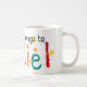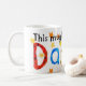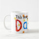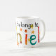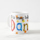 Uma caneca branca com um design pintado à mão da "colagem" e a inscrição colorida, star spangled "esta caneca pertence a Daniel"