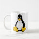A caneca diz do "o dispositivo café" em Linux. No outro lado é a mascote Tux de Linux.