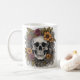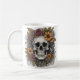Mug com design gráfico de esqueleto florido