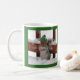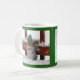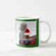 Esta caneca mostra duas fotos bonitas de esquilos, sobre um fundo verde, que parecem estar vestindo chapéus de Natal. Esta caneca é uma forma excelente de beber o seu cacau de Natal ou ovos quentes e torradas na época de férias. A parte de trás da caneca tem uma foto diferente de um esquilo em um boné.