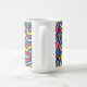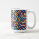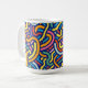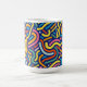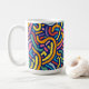 Um design de caneca ousado e enérgico repleto de curvas abstratas vibrantes e linhas fluídas divertidas. A rica mistura de cores brilhantes em um fundo profundo cria um ritmo alegre, perfeito para mentes criativas e amantes de louças inspiradas na arte moderna.