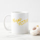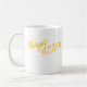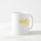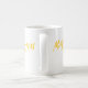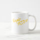 O logotipo da cor do ouro é indicado em ambos os lados desta caneca branca. A caneca oficial de mágica 97,7 FM de WGMT.