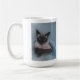Uma renderização pastel macia de um gato siamês agarra esta atrativa caneca de café.