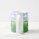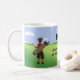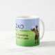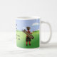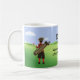 Golfista de cartum em roupas de vintage com saco de golfe de vintage e tacos olhando para a bandeira no buraco sonhando com o buraco ilusivo em um. Nome e texto totalmente personalizáveis para criar uma caneca de café de golfe personalizada muito especial