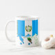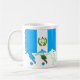 Três jogadores de futebol na silhueta jogam na frente da bandeira guatemalteca. O nome de país Guatemala está no lado