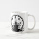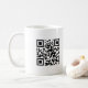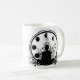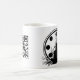 Esta é uma caneca branca clássica com uma silhueta gráfica preta bonita. É de uma mulher que senta equipado com pernas transversal com as videiras decorativas que emergem do seu de trás e das fases estilizados da lua. Este é o logotipo para o Dr. Gina Nelson, sua prática e Web site. Seu código do Web site QR aparece aqui igualmente. Não há nenhuma escrita.