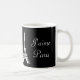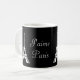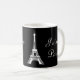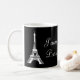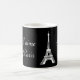 Uma caneca bonito que caracteriza uma imagem da torre Eiffel no branco com as palavras "J'aime Paris" em ambos os lados. O fundo é preto mas você pode personalizá-lo a toda a cor que você desejar.