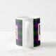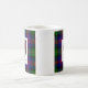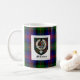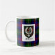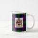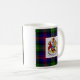 Esta caneca branca clássica caracteriza os braços antigos do clã McLennan sobrepor no tartan do clã em um lado e em uma outra versão do crachá da crista do clã no outro lado.