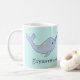 Cada lado tem um narwhal bonito com um chifre e os pontos do arco-íris. "Tudo baleia seja aprovação" é envolvida em torno da caneca.