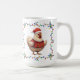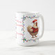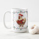 Traga um pouco de alegria festiva para o café da manhã com esta adorável caneca de Natal. Com uma galinha adorável, vestida de roupas confortáveis e festivas. Este design capta o charme da época, cercado por luzes de Natal e brimando com espírito de feriado. O frango bonitinho traz um sorriso para o seu rosto. Esta caneca é perfeita para tomar cacau quente, chá ou sua pata de férias favorita. Um presente de excelente para amantes de frango, entusiastas de Natal, ou qualquer um que acredite que a melhor parte da temporada inclui cutensílios extras. Você pode editar o texto e colocar um fundo de cor favorito.