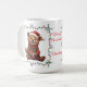 Traga um pouco de alegria festiva para o café da manhã com esta adorável caneca de Natal. Apresentando um filhote de urso adorável, vestido com roupas festivas confortáveis. Este design capta o charme da época, cercado por luzes de Natal e brimando com espírito de feriado. O urso bonitinho certamente trará um sorriso ao seu rosto. Esta caneca é perfeita para tomar cacau quente, chá ou sua pata de férias favorita. Um presente de excelente para amantes de ursos, entusiastas de Natal, ou qualquer um que acredite que a melhor parte da temporada inclui cudez extra. Você pode editar o texto e colocar um fundo de cor favorito.