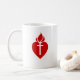 Um lembrete acessível da manhã para oferecer seu dia ao deus. Esta caneca caracteriza uma imagem sagrado do coração e o oferecimento da manhã de Fatima.