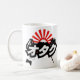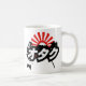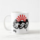Caneca de OTAKU que caracteriza imagens icónicas da cultura japonesa tais como robôs gigantes, Monte Fuji, espadas do samurai, video games e meninas bonitos do anime. Ajuste contra o sol de ascensão no fundo. As letras "オタク" são escritas em katakana japoneses. O design é devotado aos fãs do cultura Pop japonês do anime e do manga.
