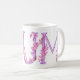 Orquídeas tipográficas em torno das letras caneca de MÃE. Bonito orquídea cor-de-água rosa-branca-branca-branca-branca-rosada, caneca-branca-roxa. Ideal para dar à mãe um Dia de as mães, um aniversário especial ou outra ocasião especial. © Original watercolor art e design por Sarah Trett. www.sarahtrett.com para www.mylittleeden.com
