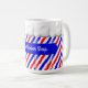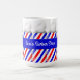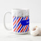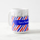 Caneca vermelha, branca e azul de Pólo da barbearia pronta para que você personalize com nome da pessoa ou nome da loja.