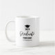 Esta caneca de formatura moderna apresenta letras cursivas pretas "20YY (seu ano de formatura) Graduado" com texto personalizado. Esta caneca personalizada será um presente único para graduados. Mais opções de cores e designs estão disponíveis na minha loja BaraBomDesign.