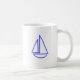 Uma linha azul de solteiro põe a vela nesta caneca branca brilhante.