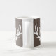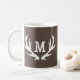 Caneca de viagem dos antlers do monograma dos cervos da caça do vintage. Design rústico do caçador monogrammed com letra inicial conhecida. Personalizable para o pai, o pai, a mamã, a mãe, o marido, a esposa, o namorado, a caneca de café chique do logotipo do país do namorada etc. Brown e cor branca ou feita sob encomenda do fundo. Também agradável para caçar o casamento do tema.