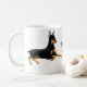O design original das belas artes de um cão alerta do Pinscher do Doberman pelo ilustrador Carolyn McFann do estúdio de ronrom de dois gatos em uma caneca da qualidade para Dobie ventila.