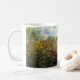 Caneca do jardim de rosas de Monet. Óleo em canvas desde 1883. Claude Monet impressionista francês criou algumas das paisagens as mais bonitas do jardim perto de sua casa em Giverny. Este é um de seus trabalhos mais adiantados que descrevem um jardim de rosas na manhã perto de Argenteuil. O trabalho caracteriza os rosas amarelos, vermelhos e brancos que florescem pacificamente na frente de uma casa enquanto um casal anda na distância perto de uma cerca e de umas árvores de balanço. Um presente bonito para fãs de Monet, de pinturas cor-de-rosa, e de paisagens impressionista.