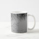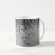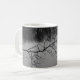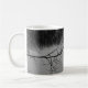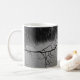 Mug com uma foto em preto e branco de um lago com galhos de árvores e lindas reflexões.