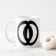 Branco clássico caneca de 11 onças que descreve o tsuba (guarda de espada) do samurai famoso Musashi Miyamoto. O tsuba é um design clássico de Higo e descreve dois Namako (pepinos de mar). Musashi Miyamoto é um do samurai o mais famoso de Japão. Após o vencimento sobre 62 duelos - último usando meramente uma espada de madeira - escreveu os livros múltiplos que foram mantidos a este dia. Se você tem o tempo, faça pouca busca Go Rin nenhum Sho, ou "o livro de cinco anéis". - Imagem de Tsuba em ambos os lados.