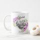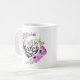 Caneca personalizada da proposta da dama de honra que caracteriza ilustrações florais em torno de um coração da folha de ouro do falso estalando a pergunta