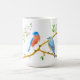Os pássaros azuis orientais são encontrados apenas na América do Norte. Embora as cores da ave fêmea não sejam tão brilhantes quanto as do macho, ambos exibem um azul fascinante e uma garganta e peito alaranjados avermelhados com uma parte inferior branca. Os pássaros azuis neste produto foram criados com carinho por W.B. com cores Prisma.