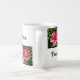 Hibiscus floresce em quatro quadrados escalonados. Quatro espaços brancos são preenchidos com as palavras "Aloha", "Paz", "Compaixão" e "Amor". As imagens de flores cor-de-rosa com fundo verde e folheado são reproduzidas como o plástico à volta da caneca.