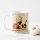 A caneca é de excelente qualidade, de bom peso e aparenta resistentência. O tamanho grande da caneca de 444 ml é muito prático, ela serve até para sobremesas. A alça é do tamanho certo para empunhadura, e oferece grande firmeza. A impressão ficou perfeita, a imagem ficou completamente nítida, e as cores vivas como na imagem do site.