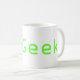 Caneca decorada com a palavra "McGeek" uma referência ao caráter em NCIS