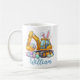 Esta caneca personalizada de pás de Páscoa para crianças foi inspirada pela pura alegria que as pequenas sentem quando suas coisas favoritas se juntam — caminhões de construção, ovos de Páscoa e ver seu próprio nome impresso. O design divertido apresenta uma escavadeira amarela brilhante usando orelhas de coelho, recolhendo ovos coloridos de Páscoa, tornando cada gole uma parte de uma aventura de primavera.