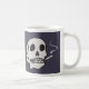 Aprecie um copo quente de Joe com um bocado do humor torcido. Crânio com cigarro iluminado que parece incandescer contra um profundo - fundo roxo. O outro lado lê, "Smokin quente".
