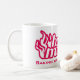 Caneca de presente divertido para chá de bebê. A caneca diz que a mamãe quente está assando até novembro. Ou personalize com a data de parto do seu bebê. Design exclusivo de Sarah Trett.