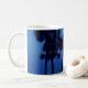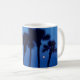 Caneca de café bonita com uma foto de Daytona Beach, FL que mostra palmeiras tropicais com a lua in-between sobre o oceano.