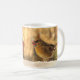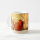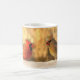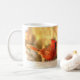 Aqui está uma caneca com o Sr. Cardeal Norte à esquerda e a Sra. Cardinal Norte à direita. É o outono com uma folhagem gloriosa no fundo, mas a primeira neve caiu para nos dar uma prévia do inverno. Ele é uma cor vermelha brilhante. Ela é laranja, ouro e marrom. Ambos têm cristas e bicos de laranja. Eles são verdadeiramente a realeza dos pássaros do quintal com sua música distintiva e cores adoráveis.