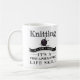 Confecção de malhas: Uma caneca Cargo-Apocalíptico da habilidade da vida que caracteriza a tipografia moderna e uma bola do fio com agulhas de confecção de malhas. Mostre fora sua paixão e seu sentido de humor subtil.
