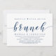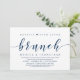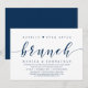 Tema azul-marinho sofisticado de letra moderna, cartão de convite de casamento íntimo (Café da Manhã do Felizes para Sempre). É perfeito para a sua celebração de casamento íntimo casual à beira do lago.